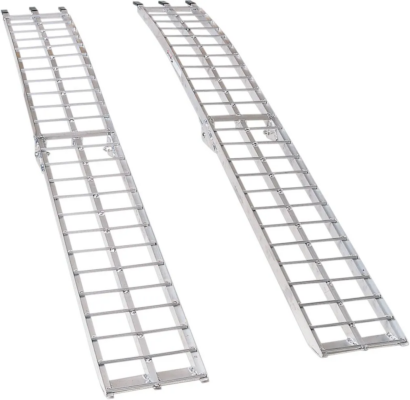 Vastupidav ja kerge alumiiniumist kaldtee komplekt, mis on ilmastikukindel ja sobib ideaalselt mootorrataste, ATV-de või murutraktorite laadimiseks.
